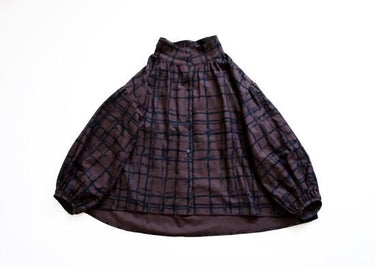 ★2023AW★michirico ミチリコ Chocolate check high collar shirts チャコール MR23AW-17(womens)