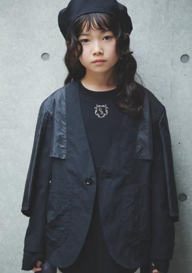 子供服に大人服や、それ以上の、パターンや仕様、概念を入れながら、世界観を表現している。