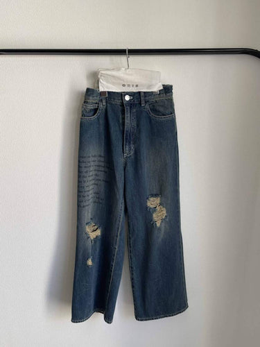 5pocketの程よいワイドシルエットのダメージデニムになります。