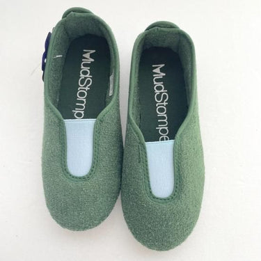 La Cadena ラカデナ GIMNASIA - SUMMER PILE PILE PANEL SLIP ON kids サマーパイル GREEN×SAX BLUE 55233/15/06