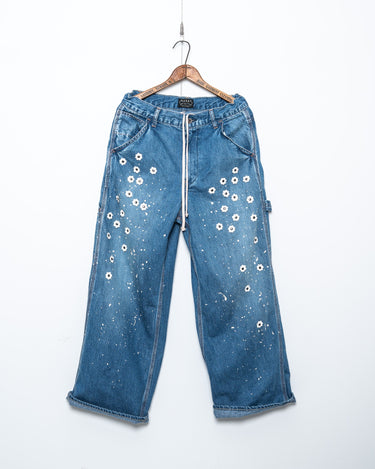そのパンツにフェイクレザーのデイジーモチーフを金属カシメで散りばめました。