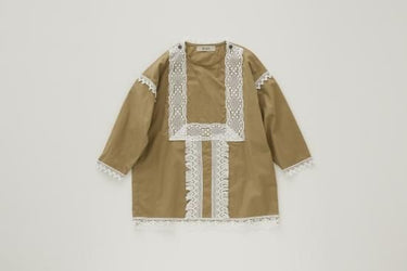 ★2024SS★eLfinFolk エルフィンフォルク Cottn Typwriter Lace dress Shirt camel 155cm elf-241F50