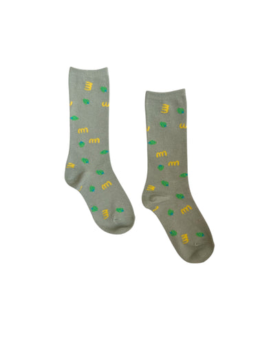★3-5月入荷予定ご予約★2026SS★minnano×frankygrow M&SB PATTERNED SOCKS FROSTY GRAY