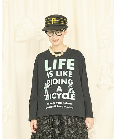 ロゴ意訳 人生とはまるで、自転車に乗っているようなものだ。動き続けないとバランスは取れない。