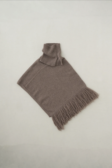 純度高く精錬された上質なアンゴラ混の糸を使い、シンプルに編みたてています。ロスがすくないように二枚の長方形の編地から構成され、ネックウォーマーは取り外しができる為、外出着としても、部屋の中でも長く愛用していただけます。