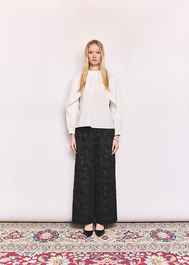 袖口はギャザー+太めのゴムのカフスで、ふんわりとした立体感を演出します。